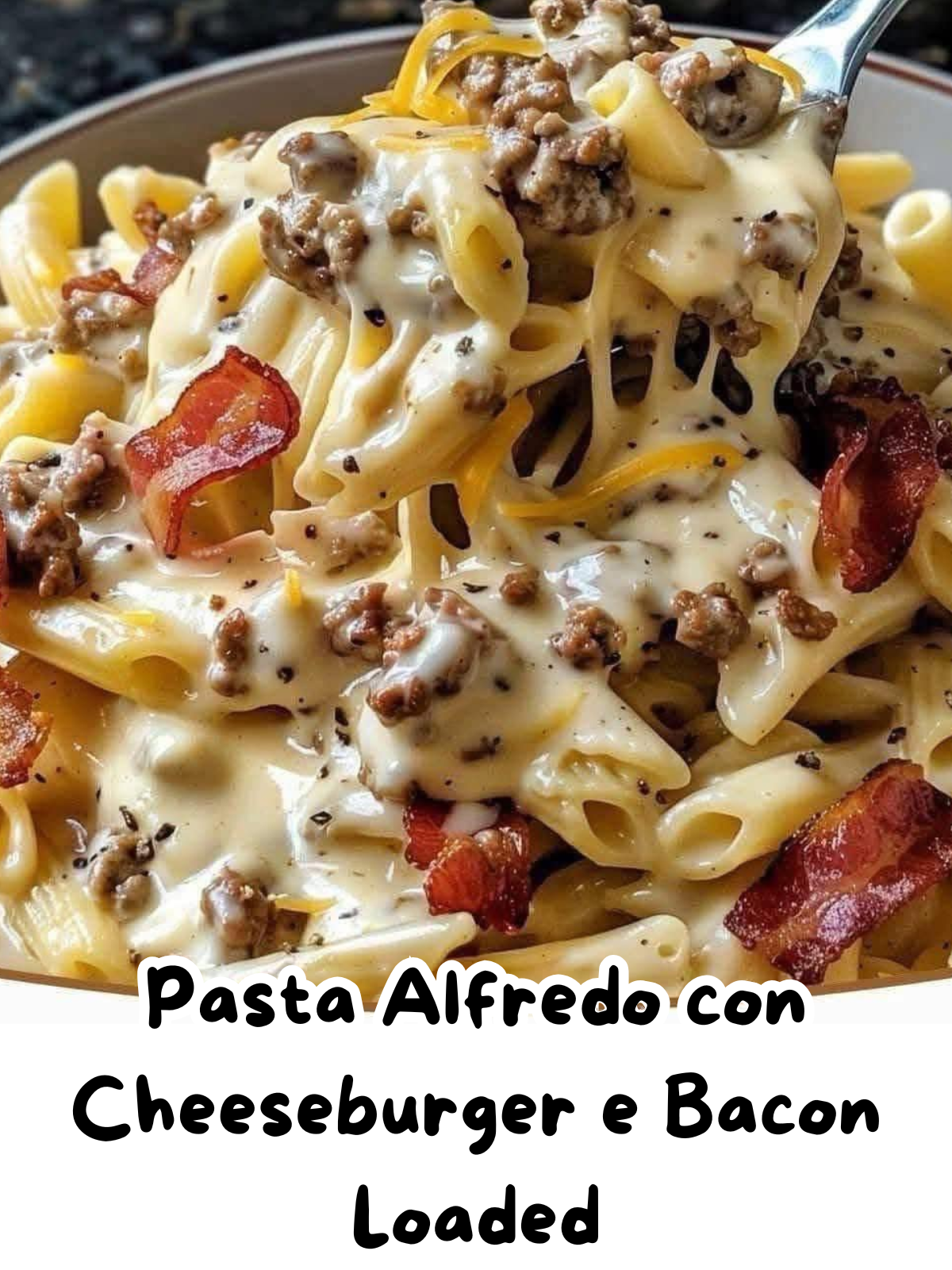 Pasta Alfredo con Cheeseburger e Bacon Loaded